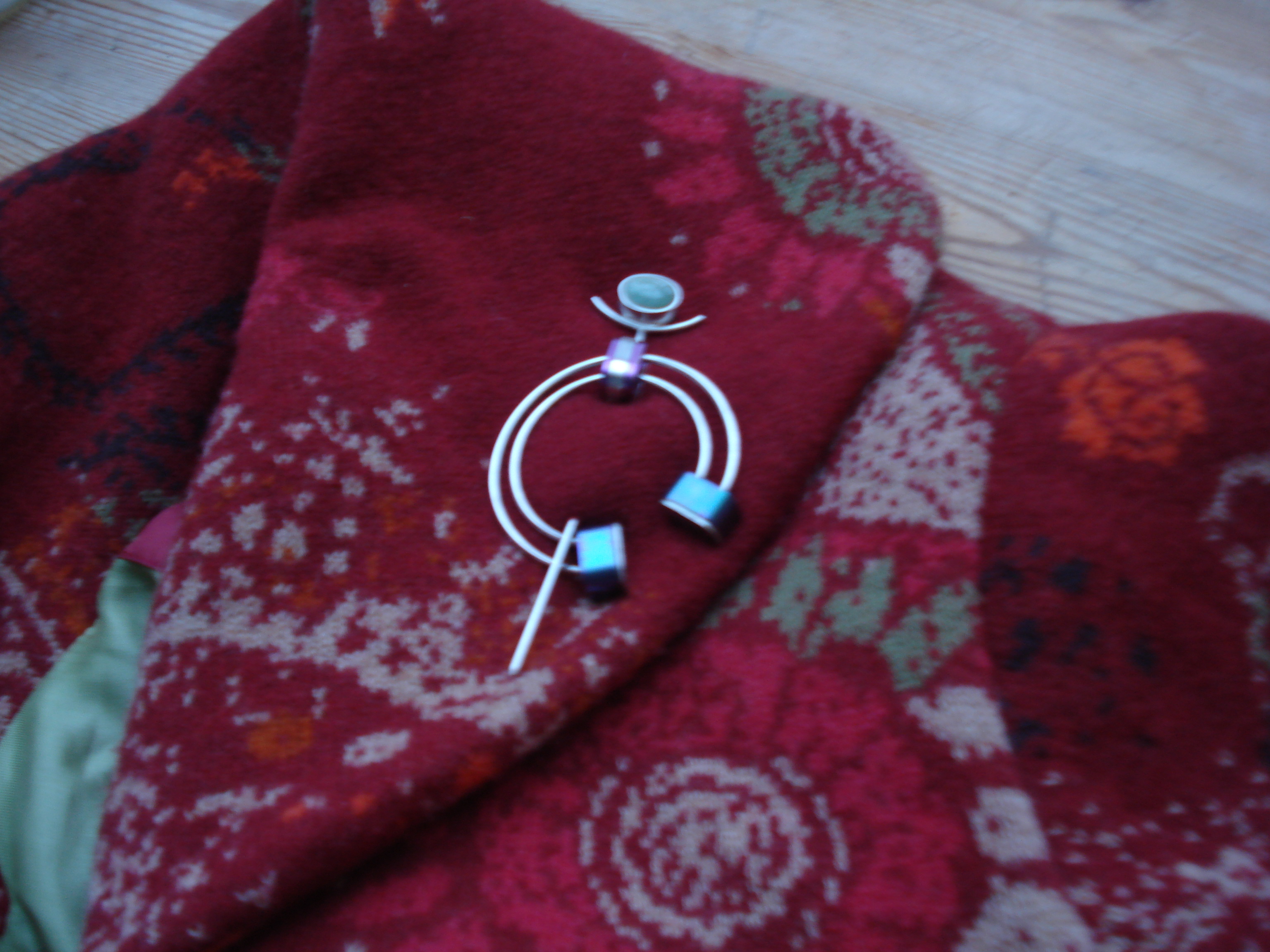 Een fibula is een speld,ook wel doekspeld of mantelspeld genoemd, die al door de Romeinen werd gebruikt. Door de pen te draaien over de cirkel kun je hem door de stof steken.