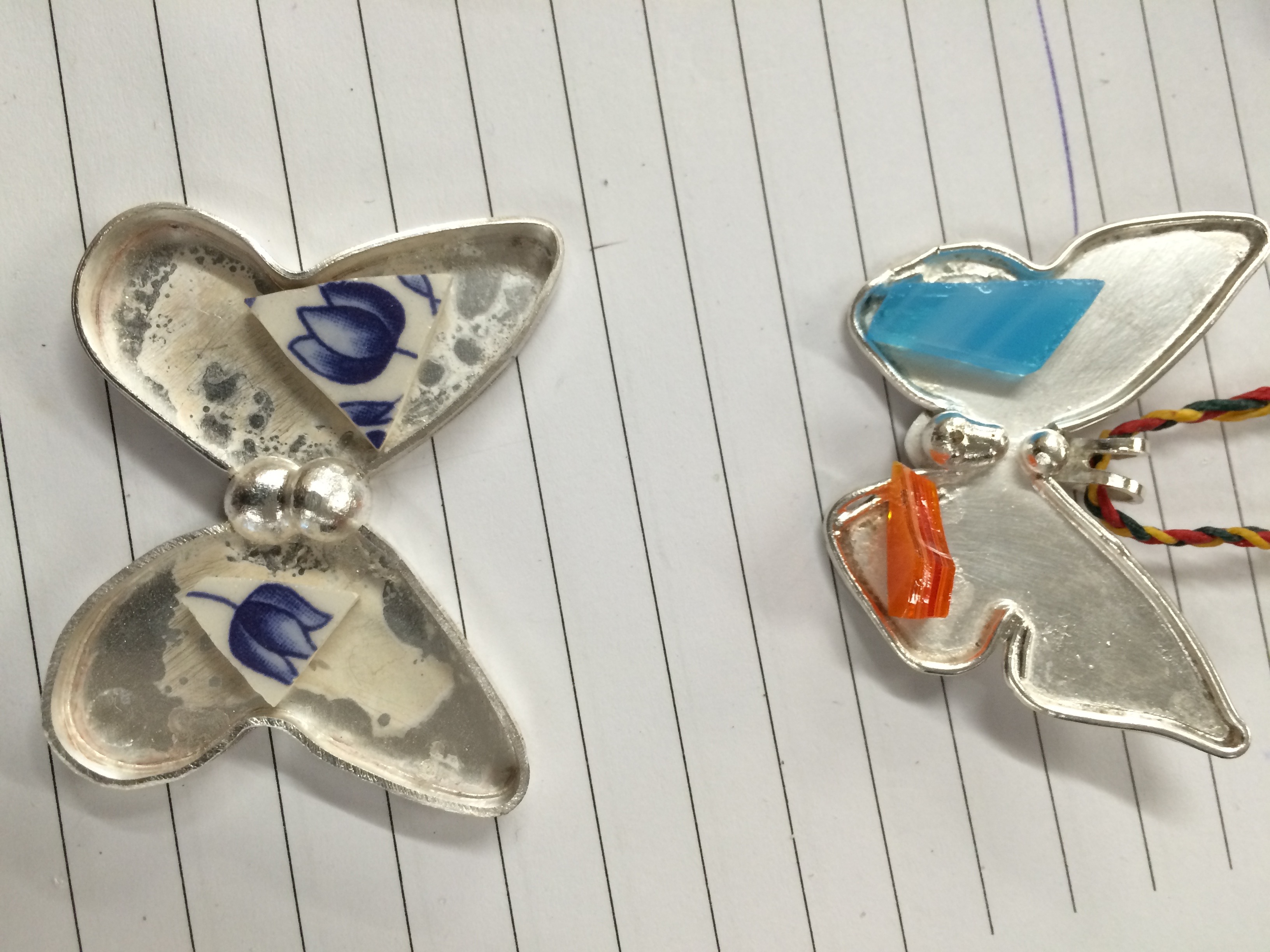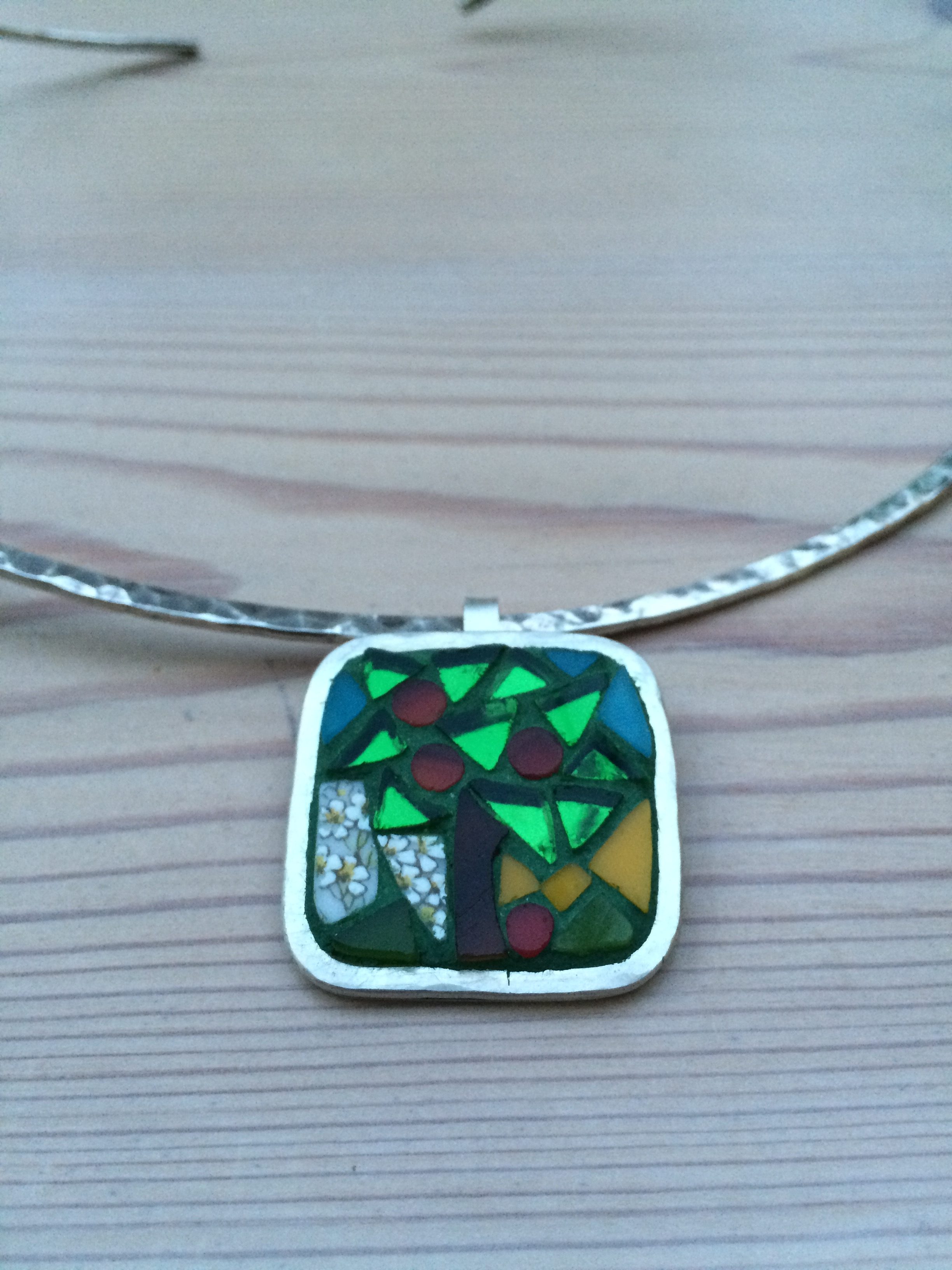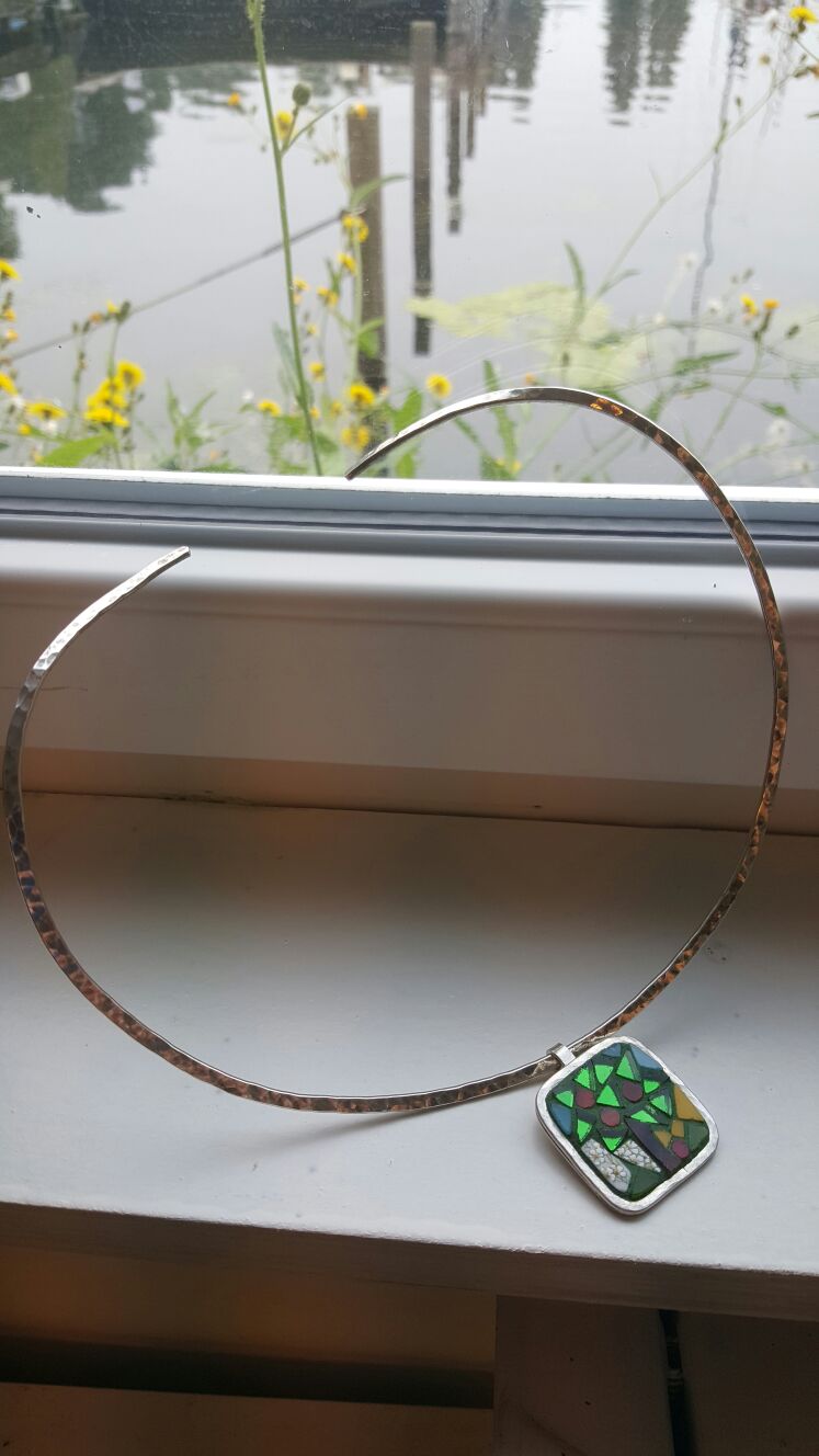 In samenwerking met collega Liane heb ik een aantal zilveren sieraden gemaakt die zij met mozaiek heeft ingelegd. Het wordt een mooi kleurig geheel. We kunnen samen zo geheel naar wens (vorm en kleur) een uniek sieraad maken.