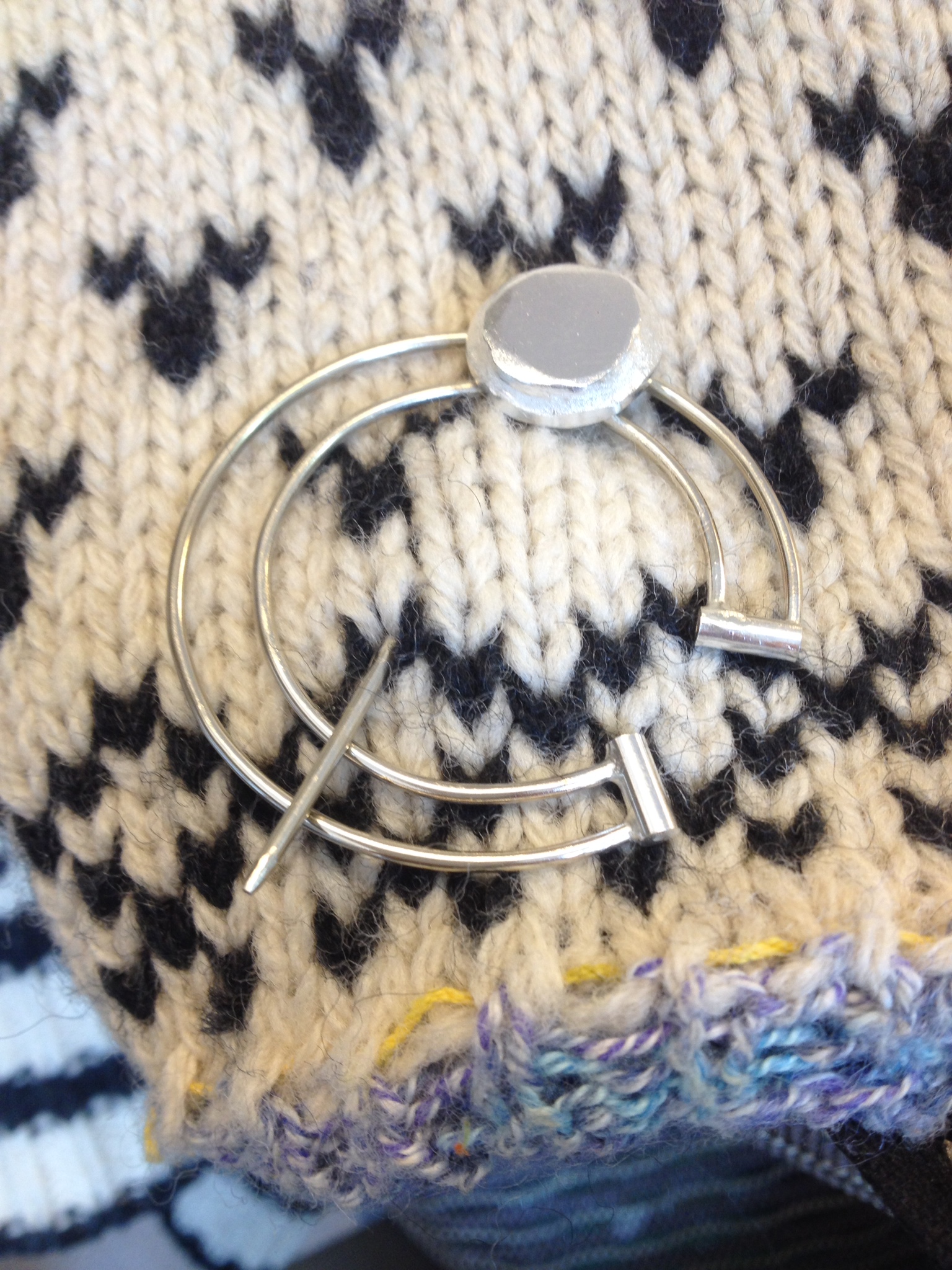 zilveren fibula op noorse trui