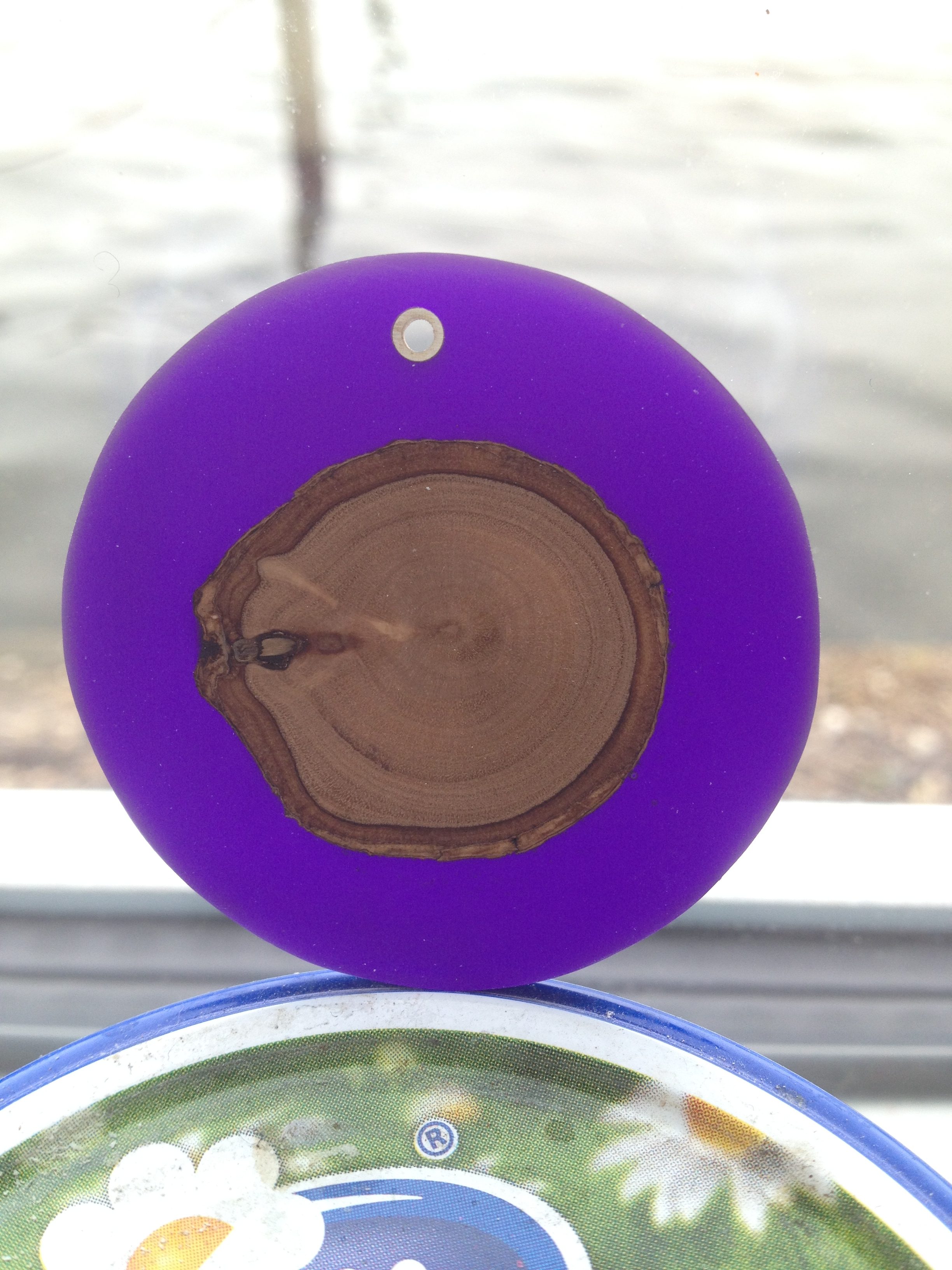 olijfhout met paarse epoxy en zilveren buisje