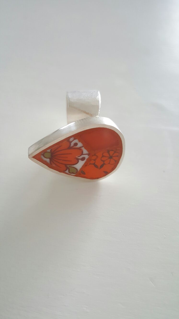 oranje mozaïek in zilveren ring